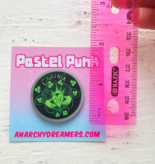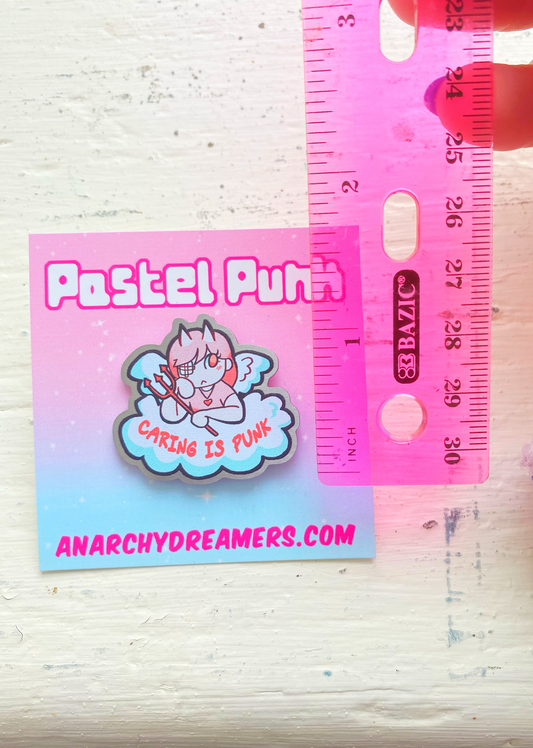 Caring is Punk Angel Devil Eco-Friendly Pin